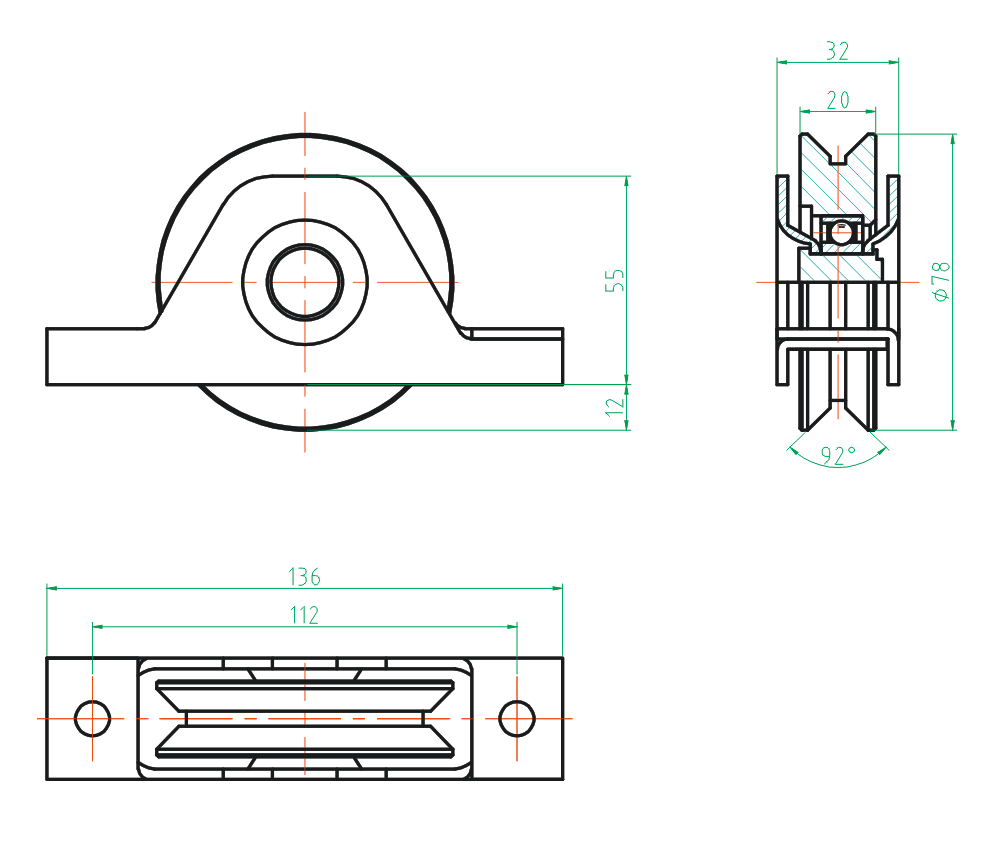 Trolley capstan with holder for roller sliding gates, average 80mm, single bearing, designed for screwing to the door frame (flush mounting), for rails type "U", D16, hot galvanized.